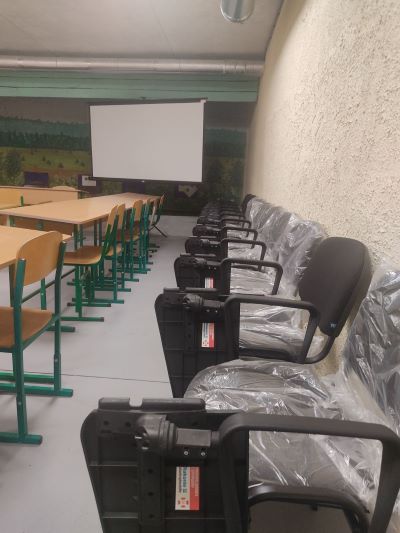 Дякуємо благодійній організації «Благодійний Фонд «Схід-СОС» за допомогу в облаштуванні укриття (стілець -34 шт., пуф - 10 шт., мати - 4 шт., проєктор з екраном - 1 шт., термопот - 1 шт.).