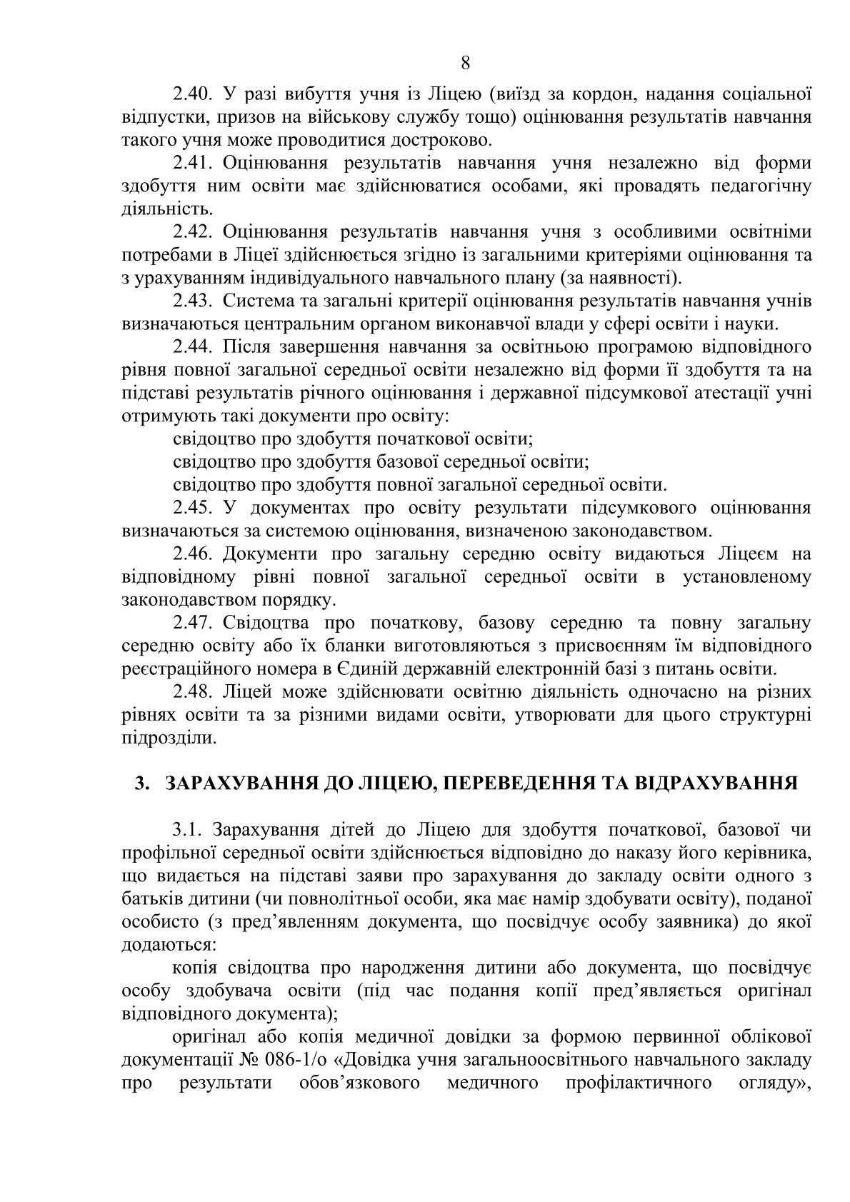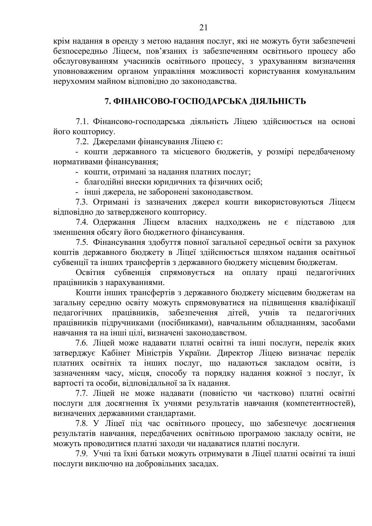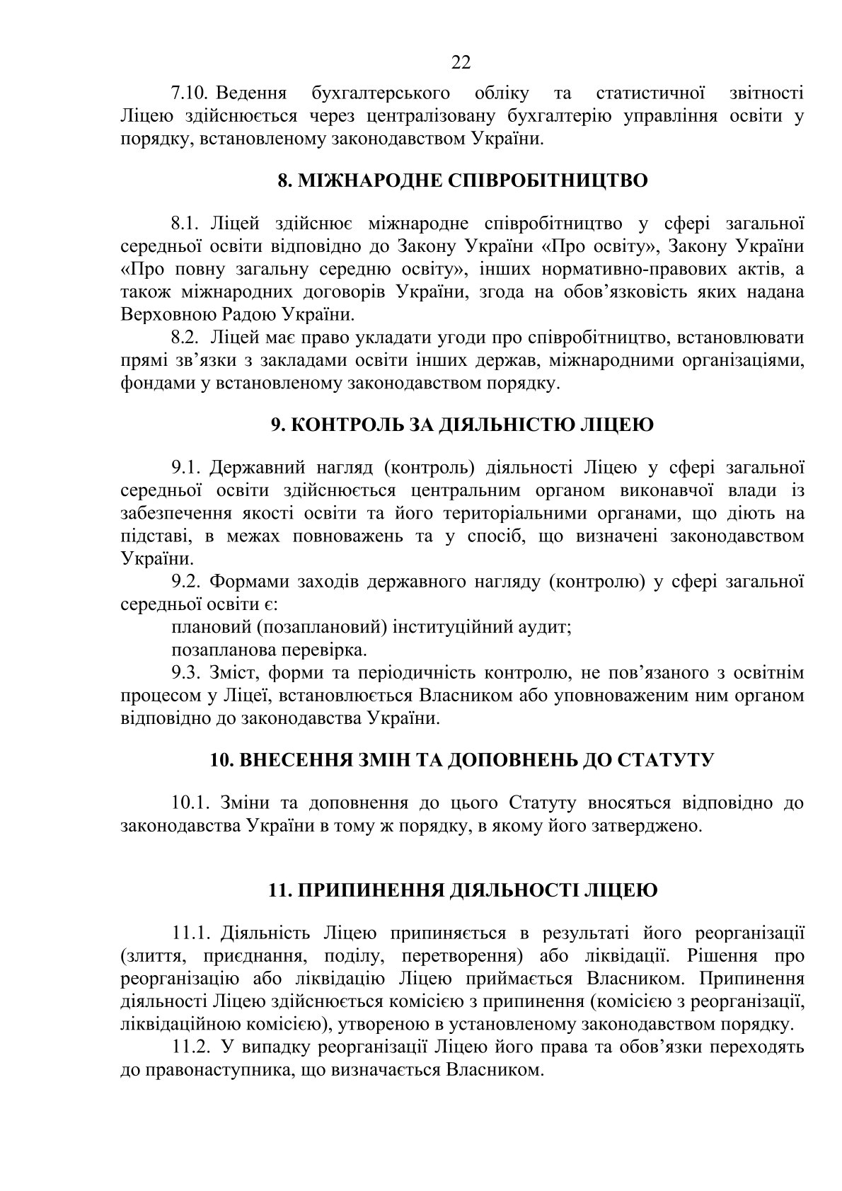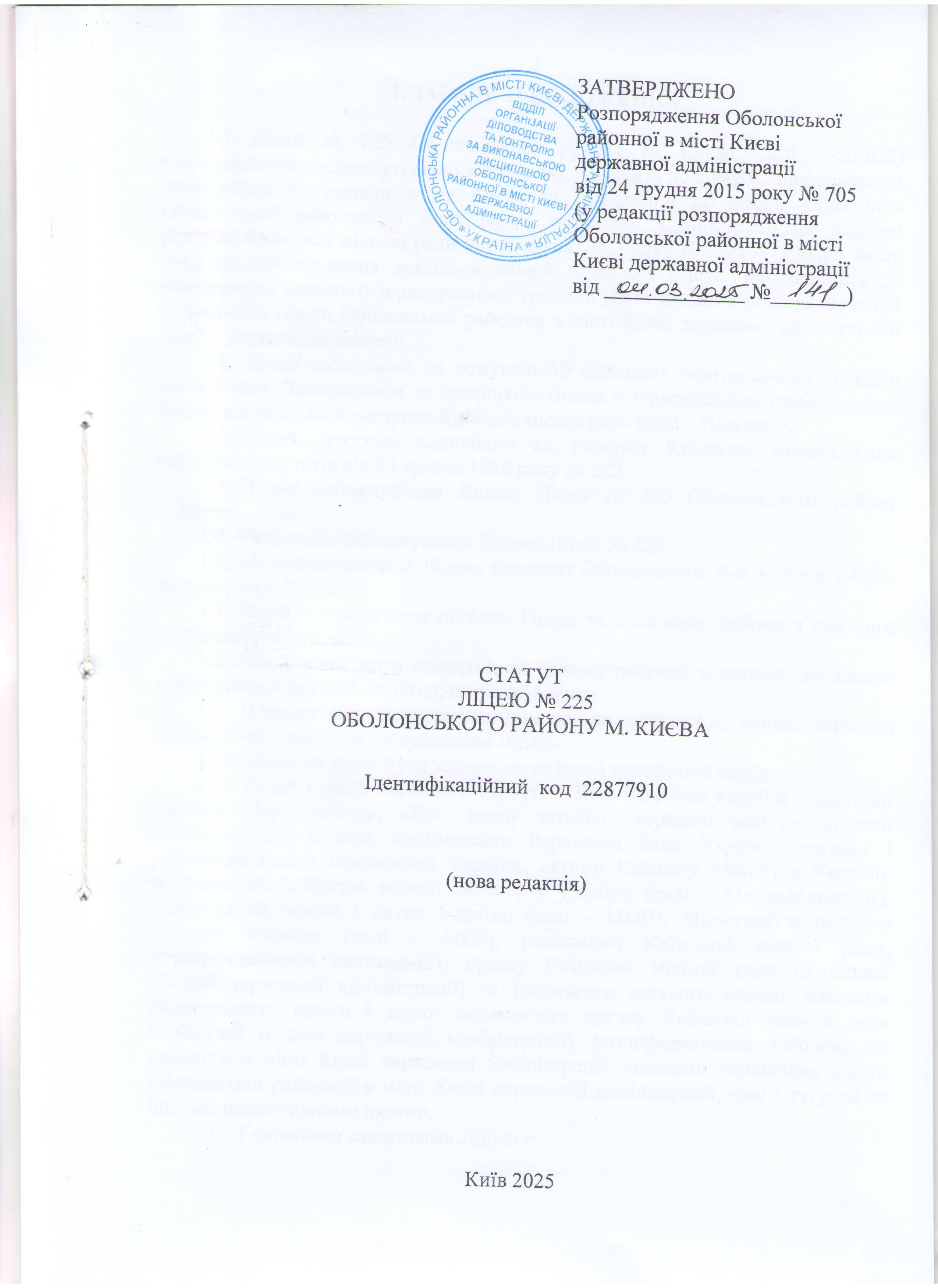 Статут Ліцею № 225 Оболонського району м.Києва