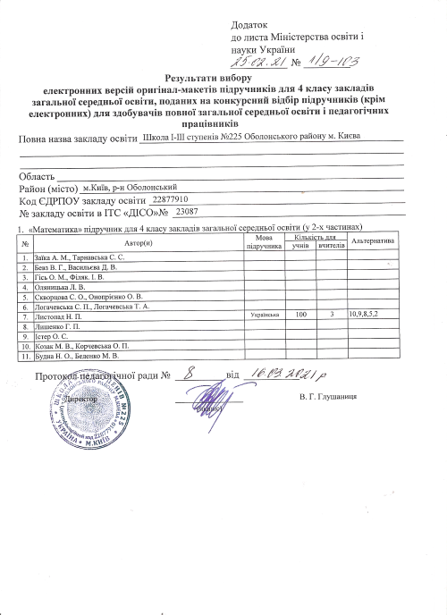 Вибір та замовлення підручників для учнів 4-х класів та педагогічних працівників Школи І-ІІІ ступенів №225