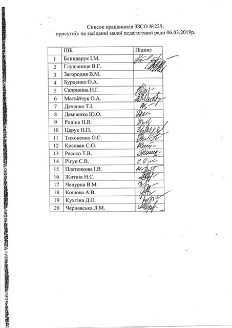 Витяг з протоколу засідання малої педагогічної ради від 18.04.2018